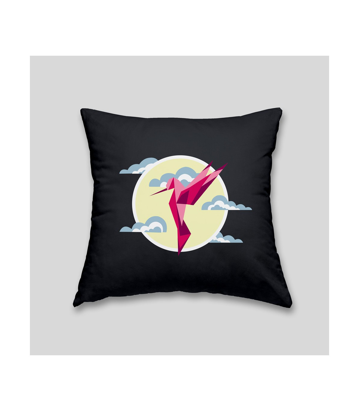 The hummingbird cushion will add a graphic and colorful touch to your sofa, armchair or bed. Create a modern and zen atmosphere that inspires relaxation. Cover 100% cotton, machine washable at 60° / Filling 100% hypoallergenic polyester.